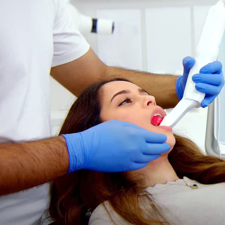 Ihr LUMIWHITE-Zahnarzt nimmt Abdrücke Ihrer Zähne, um individuelle Whitening-Schienen für Sie anzufertigen