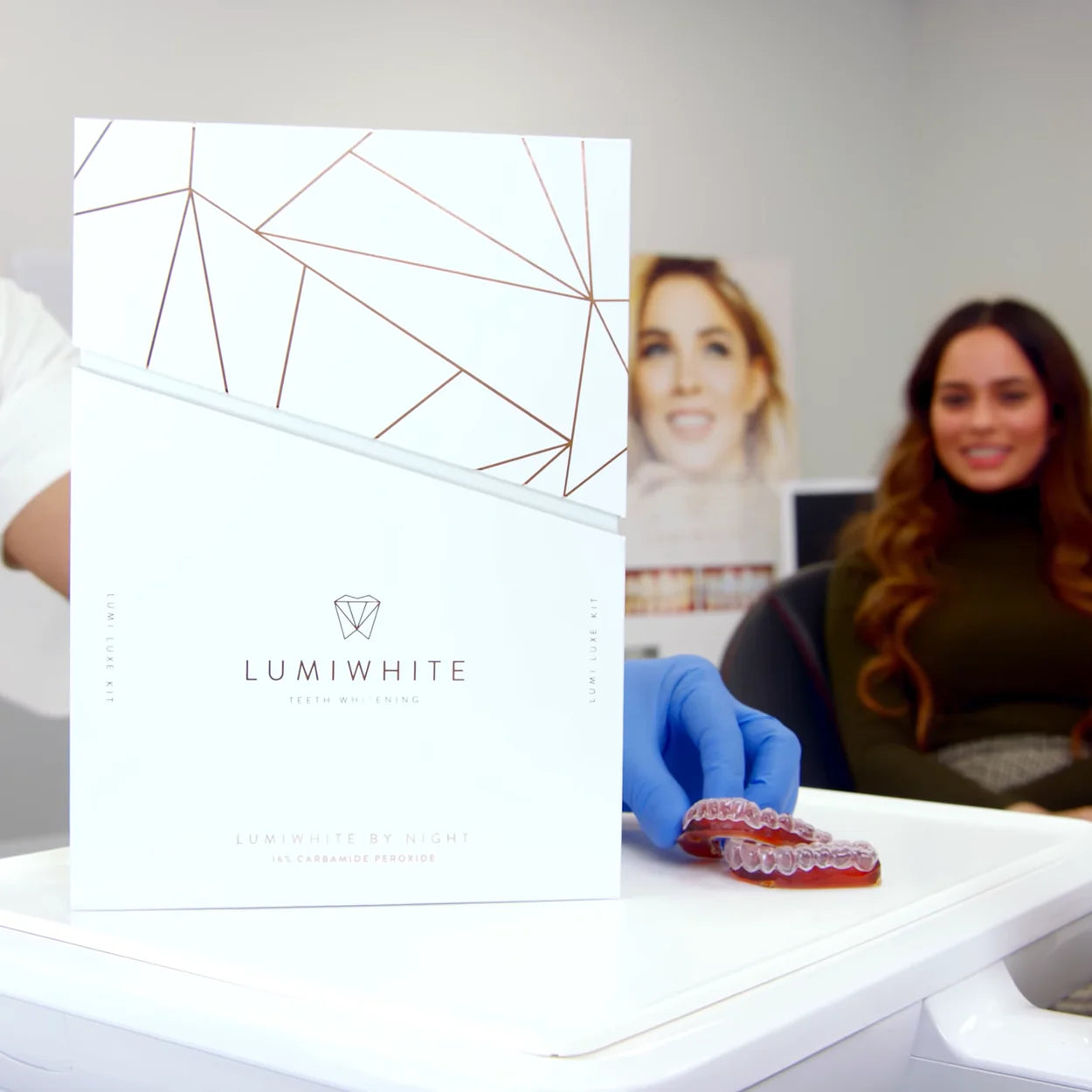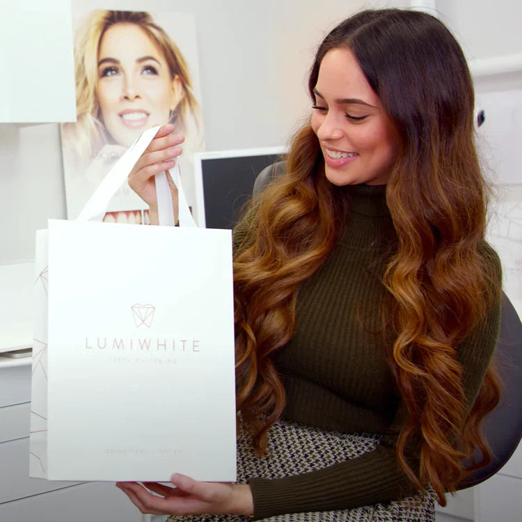 Ihr LUMIWHITE-Zahnarzt lädt Sie ein, Ihre Whitening-Schienen und das Aufhellungsgel abzuholen – dann kann die Behandlung beginnen.